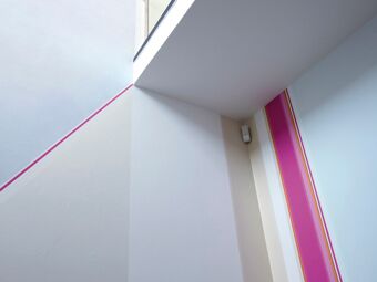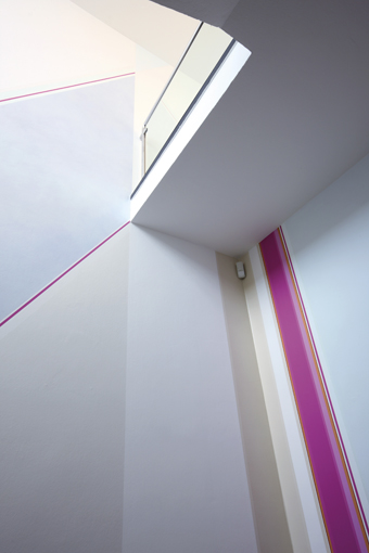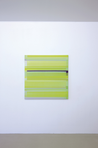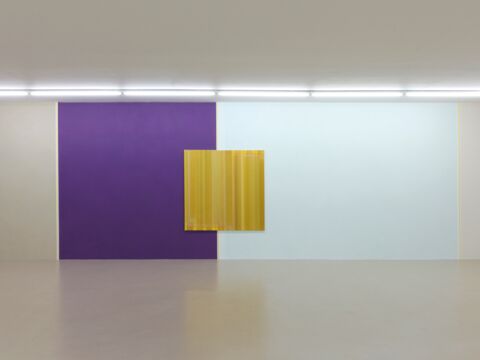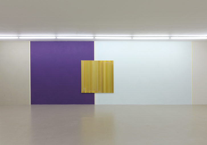 … Integraler Bestandteil der Situation sind Malereien auf Leinwand, die auf die farbigen Wände gehängt und mit deren geometrischer Unterteilung koordiniert werden. Derartige Bilder stehen in der Mitte zwischen der Wandmalerei und Malereien, die ohne eine solche Bindung im Atelier realisiert werden...