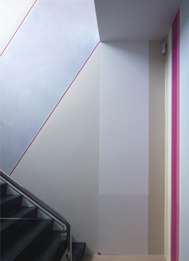 Eine Sphäre von farbräumlicher Transzendenz ist fest im räumlichen Bedingungsgefüge verankert, von diesem abgeleitet und löst sich von den Beschränkungen, die der physische Raum auferlegt. Mit dem Anspruch, die Wahrnehmung umfassend zu erfüllen, richtet sich die Raummalerei an Besucher und Benutzer der jeweiligen Architektur und befreit sie zugleich von der Verpflichtung auf deren Ansprüche. Die Malerei bietet bestimmte Voraussetzungen für die sinnliche Aufnahme des Gegebenen und das Verhalten von Personen im Raum, überlässt es aber dem Einzelnen, zu einer eigenen Einstellung zu kommen...
