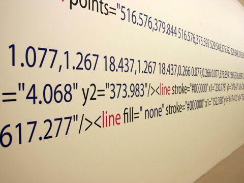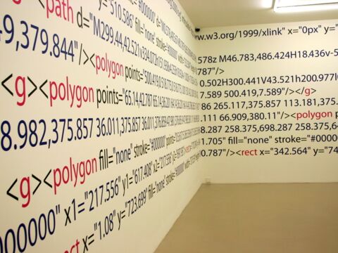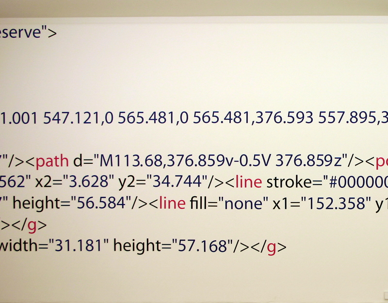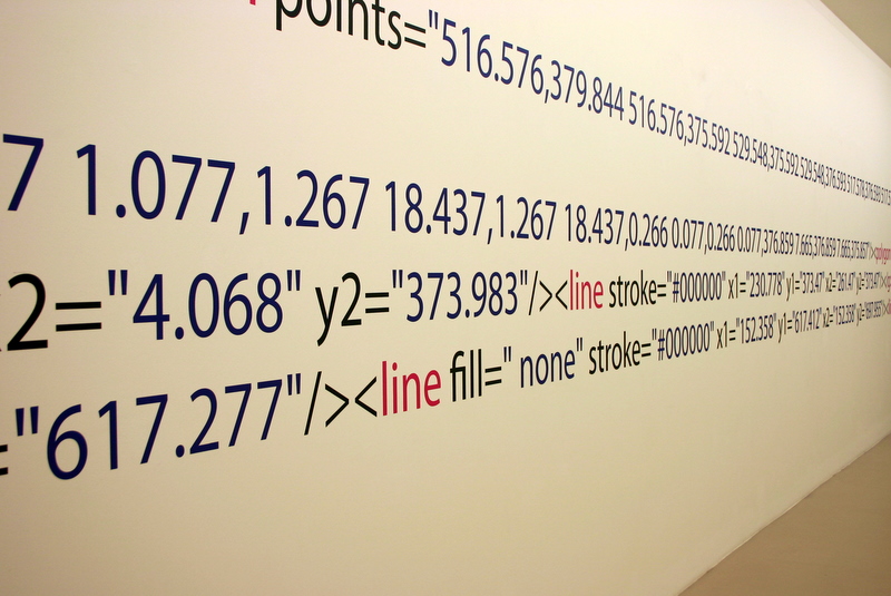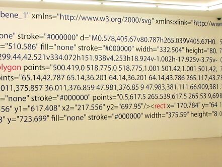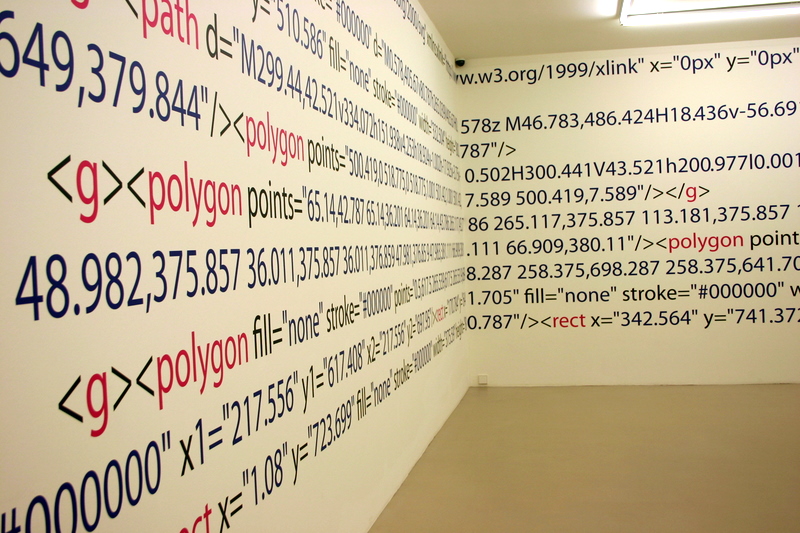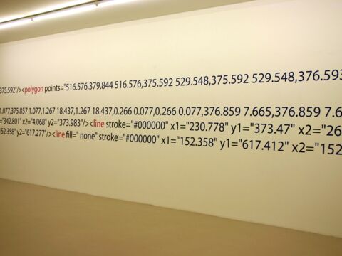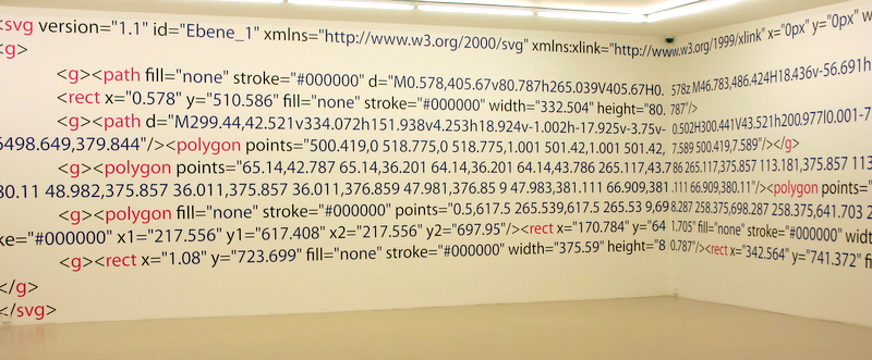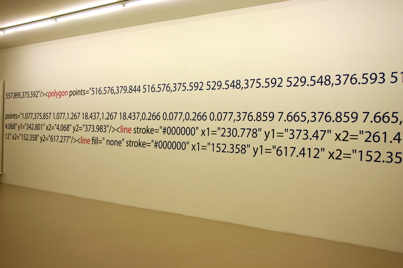 Die Arbeit macht die zur Darstellung und Konstruktion des Ausstellungsraumes verwendeten Daten des Museums gegenstandsfreier Kunst in seinen Zahlen und Zeichensystemen als ausgeschriebenen Quellcode sichtbar. Damit wird die gesamte architektonische Innenform des Ausstellungsraumes als XML-SVG Code wiederum auf den Wänden des Ausstellungsraumes dargestellt, genau in den Zahlensystemen, die der Architektur, dem Raumvolumen zu Grunde liegen. Würde man all diese Zahlen des Quellcodes in das Computersystem eingeben, würde wieder der architektonische Körper als drei dimensionales Bild entstehen. Für den Betrachter stellen die Zahlenreihen farbige Muster dar, die in ihrer lesbaren, jedoch verschüsselten Sprache auf etwas sehr Konkretes verweisen, eine Zeichnung im Raum, die zugleich eine Zeichnung vom Raum ist.