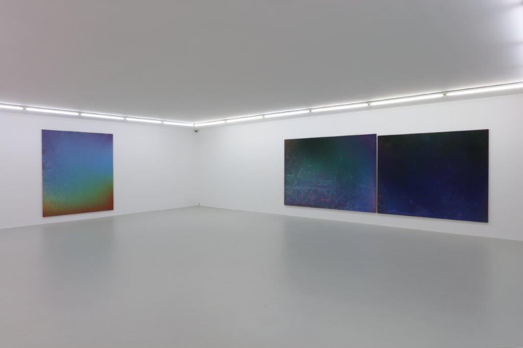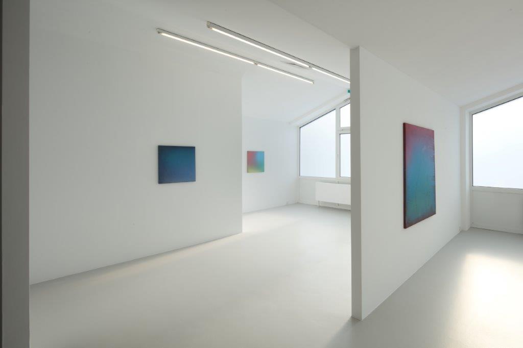 Andere Malereien scheinen auf den ersten Blick gedeckter. Doch auch hier öffnen sich Tiefen und Ahnungen von Raum, die zwischen schierer Weite und atmosphärischen Schwingungen die Intuition herausfordern: Galaxien, Unterwasserwelt oder Mikrokosmos? Schwerelosigkeit, Melancholie oder Muße? Oder alles zugleich? Auch diese Welten sind virtuell – die Imagination durchbricht die Oberfläche und unendliche Möglichkeiten eröffnen sich.